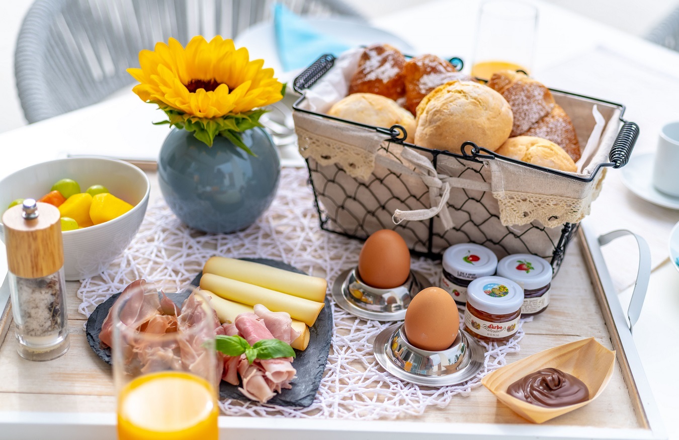 Would you like to start your day with a delicious breakfast? Then come and enjoy a relaxed breakfast with a sea view at ourBaia Blu Beach Bar – located just a few steps from the resort. Fresh croissants, aromatic coffee, and a gentle sea breeze await you right on our Baia Blu beach. A perfect start to your holiday!