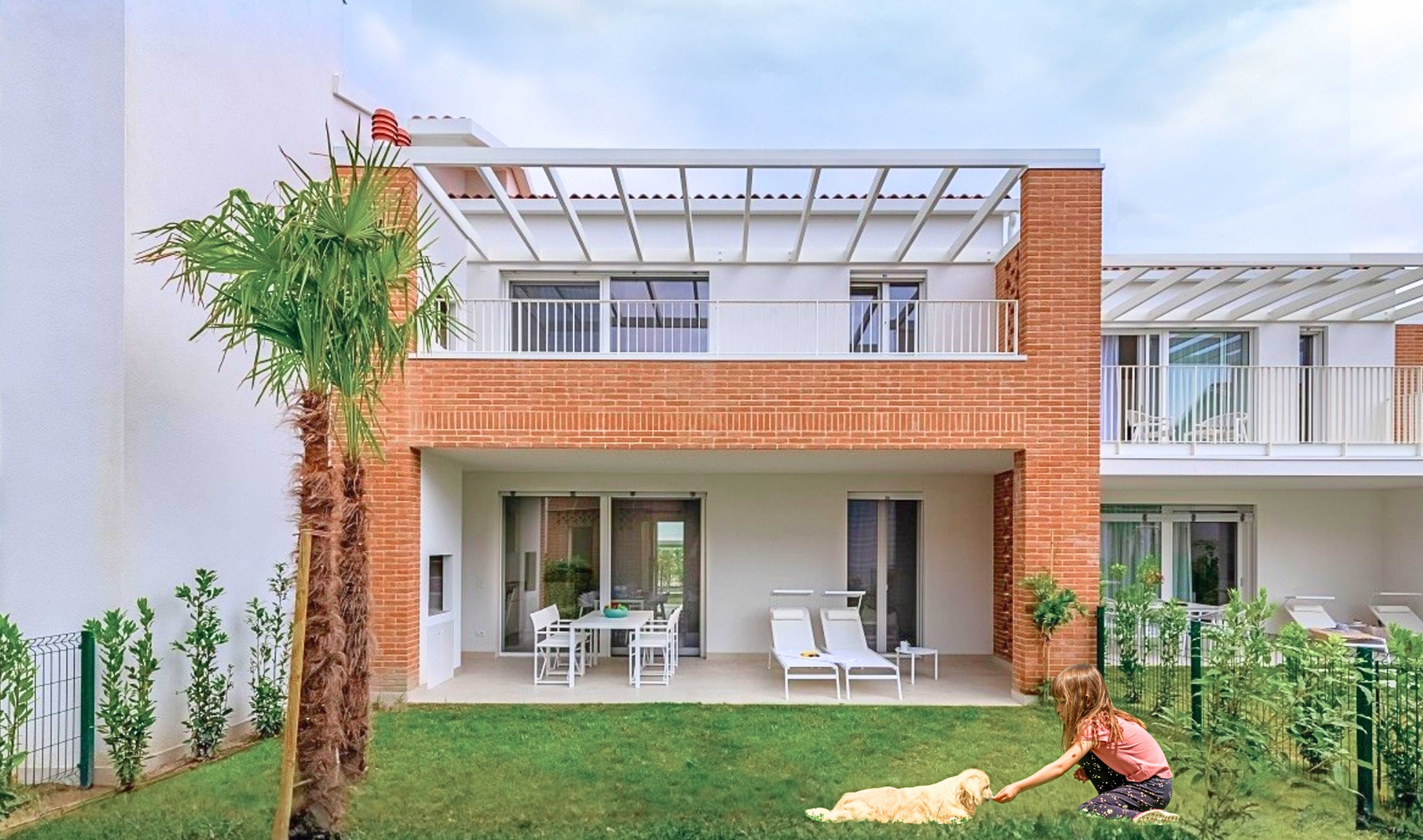 Just steps from the beach, a wide green area is perfect for short walks or playful moments with your dog.
